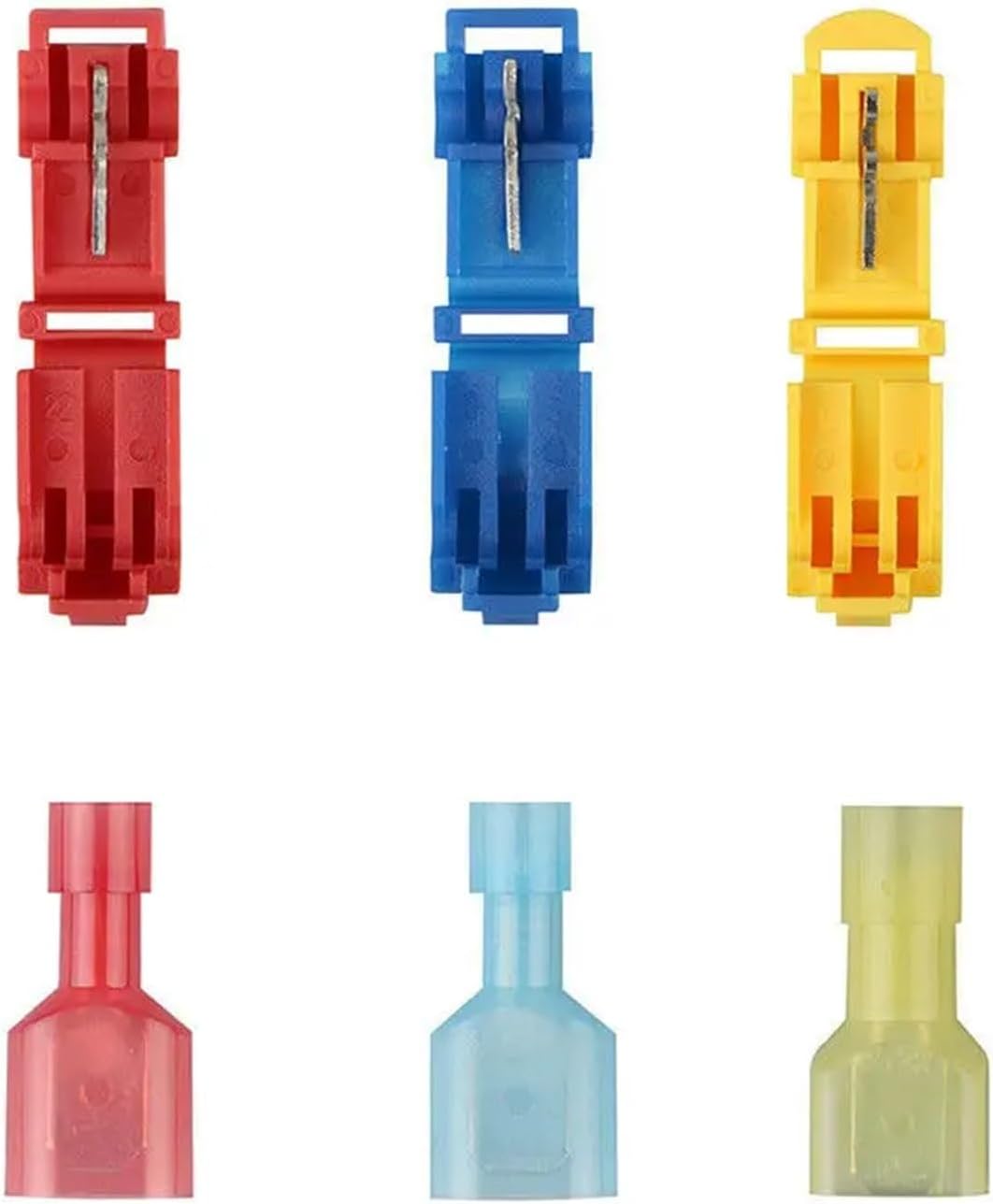 WiringPackage Included:20-piece T-joint connectors and male spade connectorssizeRed connector: suitable for cable/wire size 22-18AWG/0.5-1.5mm2;Blue connector: suitable for cable/wire size 16-14AWG/1.5-2.5mm2;Yellow connector: suitable for cable/wire size 12-10AWG/4.0-6.0mm2;Specification:Color: red, blue, yellowQuantity: 20/30/60/90 piecesMaterial: PVC and nylonType: T-connector, spade male terminalMale spade connector length: 25mmT-joint connector length: 37mmTerminal shovel width: 6.3mmTerminal width: 11mmDiameter: 3.5mm (red); 4.5mm (blue); 6.3mm (yellow)