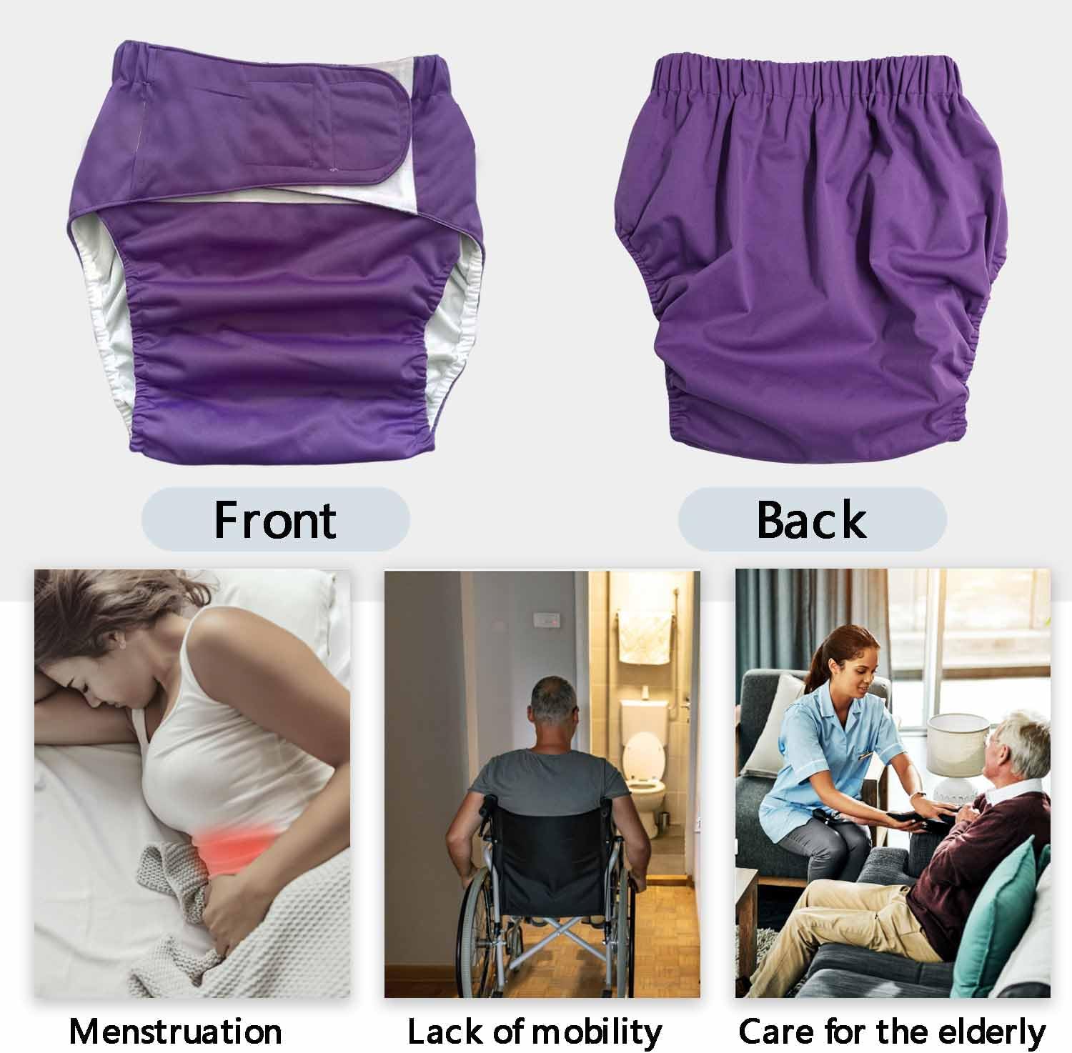 3 Pack TPU Waterproof Adult Diaper Wraps with 4 Layers Oversized Cloth Diaper Inserts, Reusable Adult Nappies Washable, Elderly Bedridden Incontinence Protection Nappy Underpants