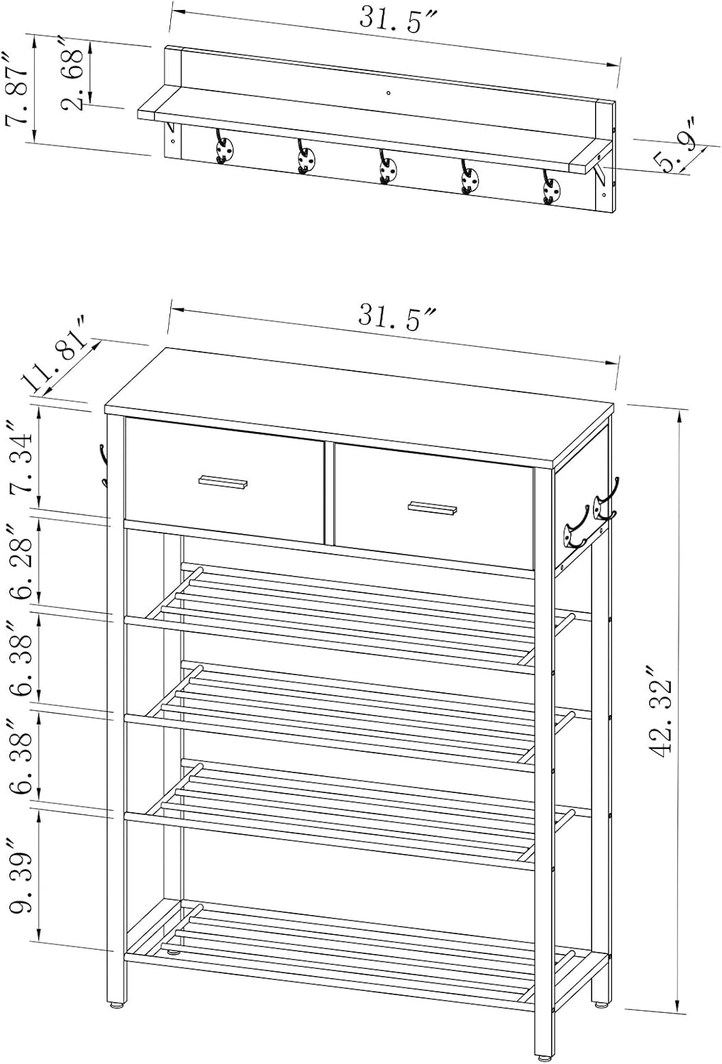 【Product Dimensions】: the lower shoe rack measures 31.5"(W) x 11.81"(D) x 42.32"(H). This compact design allows for optimal use of your hallway space without sacrificing storage capacity.