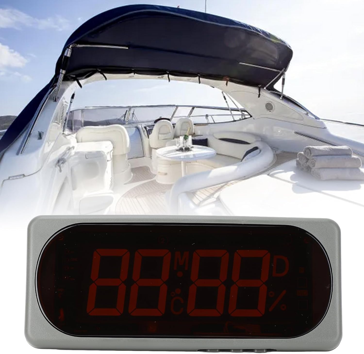 Item Type: Electronic ClockMaterial: ABSInstallation: Embedded, hangingWorking Voltage: DC24VWorking Current: 60mATemperature And Humidity Measurement Range: -19℃-75℃, 10%-95%RHTemperature Accuracy: Approx. ±1℃ (at 30%-80%RH, 0-40℃)Humidity Accuracy: Approx. ±5%RH (at 25℃, 60%RH)Storage Temperature Range: -40℃-85℃, below 95%RHOperating Temperature Range: -30℃-75℃Application: For vehicles, yachts, etc.Size(LxWxH): Approx. 203 x 85 x 40mm / 7.99 x 3.35 x 1.57inInner Size(LxW): Approx. 185 x 58mm / 7.28 x 2.28inPackage List:1 x Electronic Clock