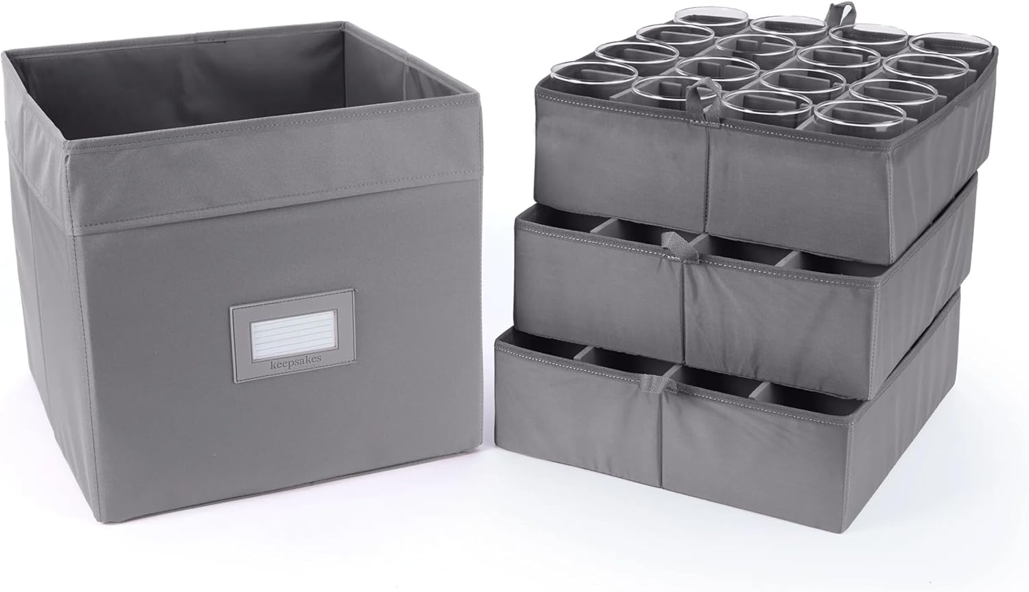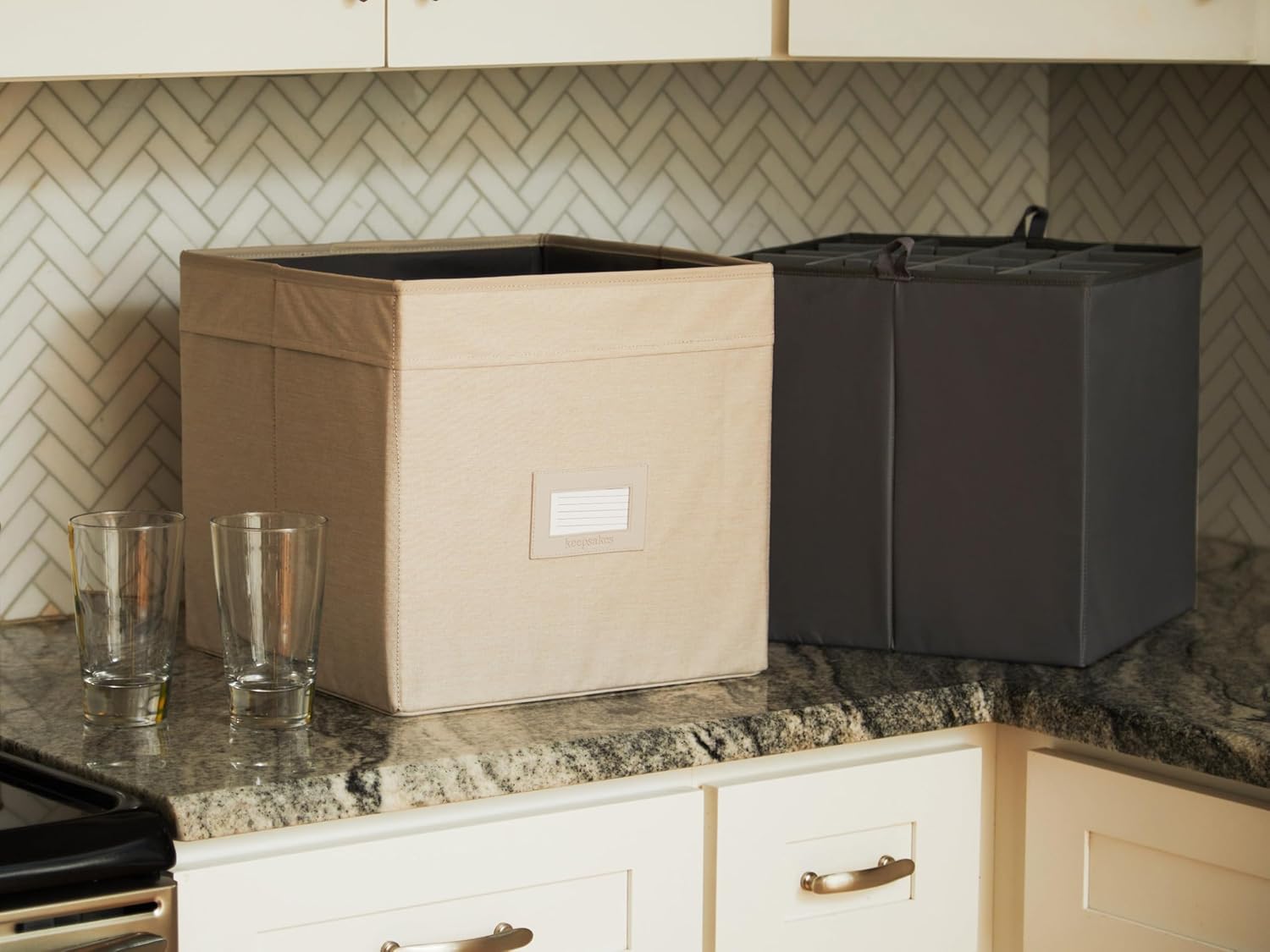 "Easy Organization Solutions: Protecting and organizing your glassware doesn’t have to be difficult. This kitchen cube glassware storage bin offers a compact and efficient way to store your favorite wine glasses, champagne flutes, and everyday drinkware. Designed to fit most cube shelving units, it helps maximize space while keeping your kitchen neat and clutter-free. Durable & Protective Design: Constructed from heavy-duty polyester with an acid-free lining, this storage bin helps guard against scratches, dust, and everyday wear. Sturdy interior walls maintain the bin’s shape, allowing it to be used confidently on shelves or stacked with other storage cubes. Customizable Storage with FlexGrid Dividers: The included FlexGrid trays feature adjustable compartments, allowing you to create the perfect layout for your glassware. Whether you need larger sections for stemware or smaller compartments for cups, this bin adapts to your needs. Convenient & Easy to Use: A built-in 360-degree handle system makes it easy to pull the bin from shelves or carry it between rooms. The clear ID window allows for quick labeling and identification, so you always know what’s inside at a glance. Reliable & Easy to Maintain: Designed for everyday use, this storage bin features easy-to-clean material for hassle-free maintenance. Backed by a 3-year warranty, it delivers dependable performance and peace of mind for protecting your valuable glassware.