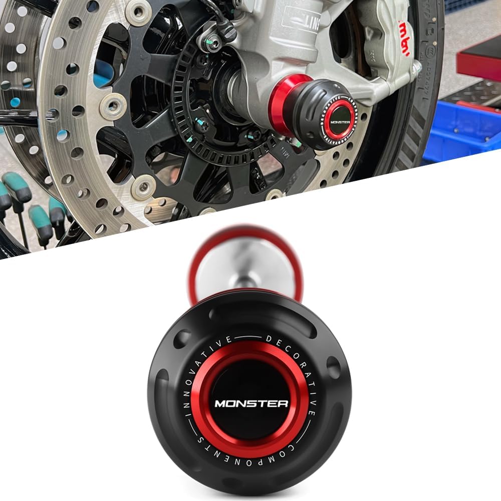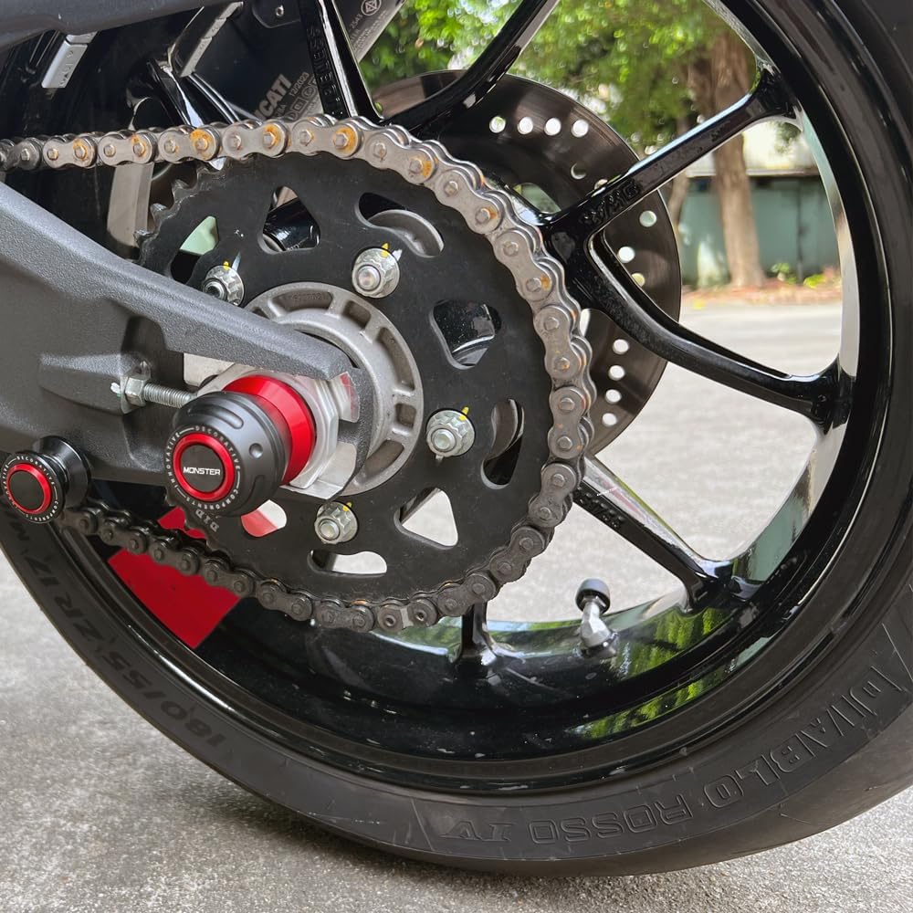 Features: ●●●Rear Axle Sliders aid in reducing damage to the front forks, brake calipers and brake discs in the event of a crash by keeping these core components off the tarmac and out of harm's way! ●●●Each kit is tailored to each bike's specific axle length and diameter. ●●●The sliders are machined from the same High Density CNC Aluminum used in frame sliders. As the CNC Aluminum slider wears down in a slide/crash, its high friction qualities help reduce the bike's speed. Made in China Specification: Type: Motorbike Rear Wheel Fork Sliders Protector Guard Pads Condition: Brand New, Never Mounted, Stable Quality. Material: CNC Aluminum 6061 Anodize and Phenol Formaldehyde Plastic (PF) Color: black/red Quantity: 1 piece Installation: Easy to install. Fitment : Compatible with Ducati: ● MONSTER 937 2021 2022 2023 2024 2025 2026 Before ordering, make sure this part is compatible with your bike.