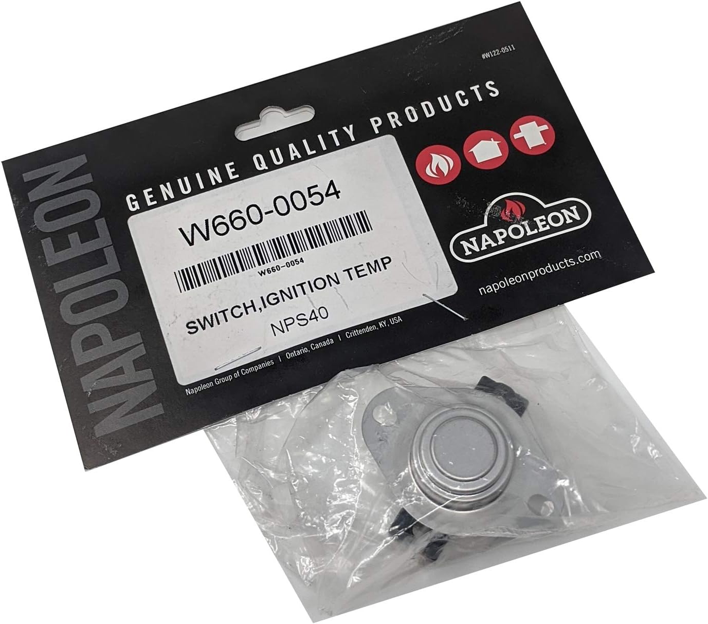 Replacement ignition switch (120F). Also called a snap switch or a limit disc. Fits Napoleon models: NPI40, NPI40-1, NPS40, NPS40-1