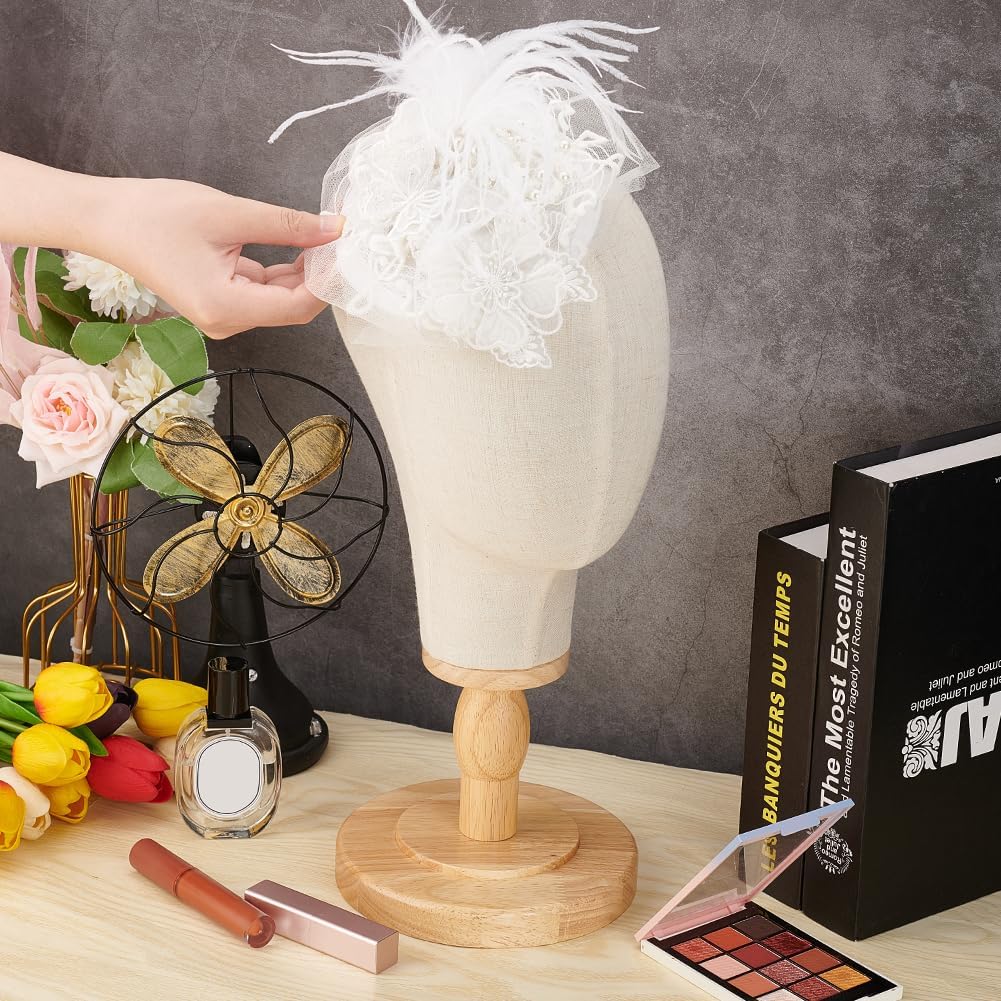 OLYCRAFT Wig Head Stand Set head: 26cm high, head circumference: 54cm, 1pc; wood bar: 12.15x4cm, 1pc; base: 16.2x2.75cm, hole: 1cm, 1pc.
