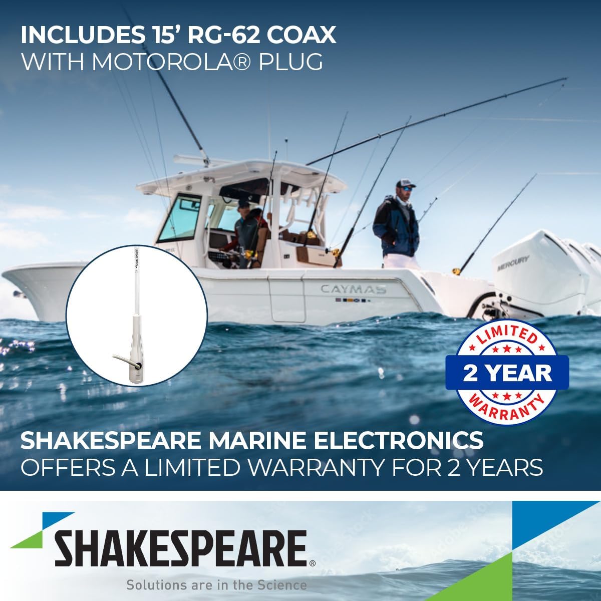 This 3ft combination antenna features Shakespeare’s exclusive distributive load for super signal pulling power. The coil is permanently sealed in Shakespeare’s white fiberglass. The Style 4351 has a nylon ferrule with 1in-14 thread for use with standard marine mounts.