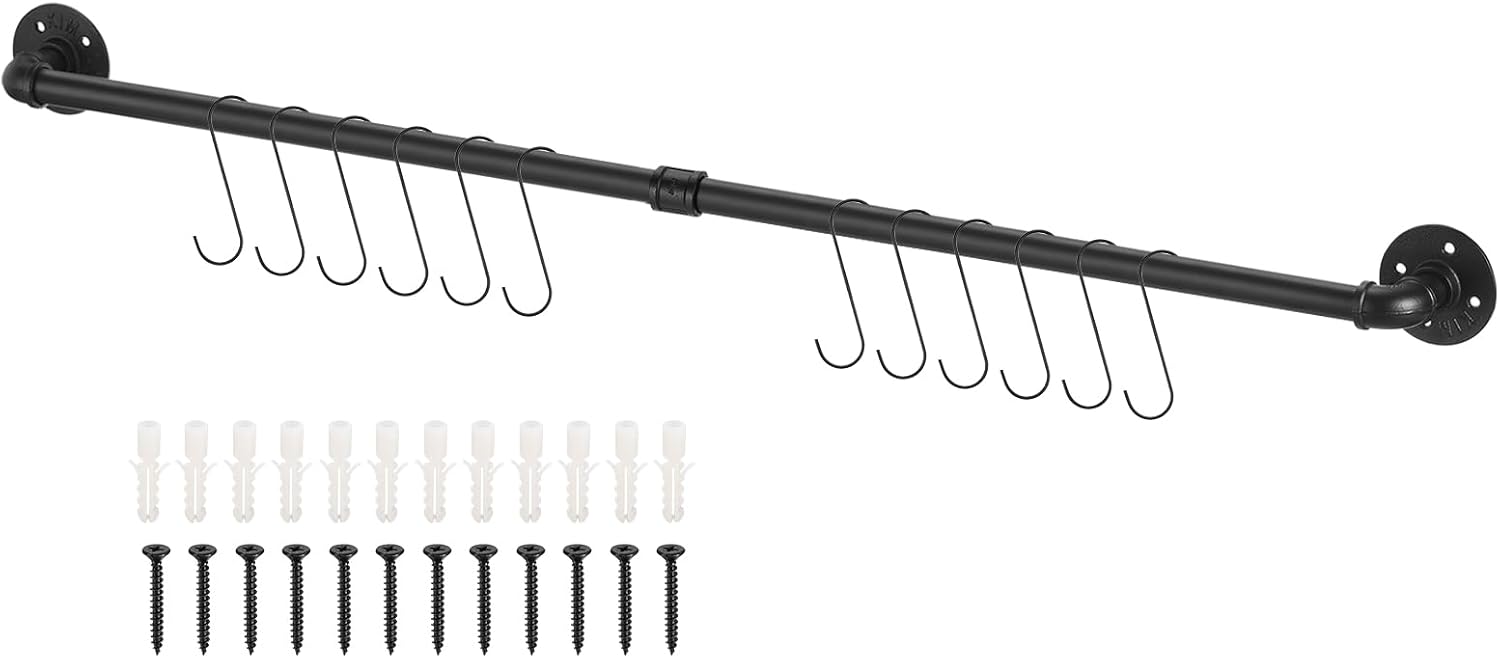 STURDY AND WATERPROOF IRON MATERIAL: Made of good-quality iron with a black coating, this towel rack and utensil holder is sturdy, waterproof, and rust-resistant, ensuring long-lasting use.VARIOUS SIZES TO MEET YOUR NEEDS: This product comes in six different sizes including 13*60cm, 13*80cm, 13*100cm, 13*120cm, 13*160cm, making it suitable for different sizes of kitchens, bathrooms, or workshops, providing ample space for storage.EASY INSTALLATION WITH INCLUDED ACCESSORIES: This product comes with screws and an installation manual, making it easy to install and mount on your wall. You can hang it securely without worrying about it falling off.VERSATILE USAGE FOR MULTIPLE FUNCTIONS: This towel rack and utensil holder can be used not only as a towel rack and utensil holder but also as a tool and accessory organizer in garages or workshops. The hooks on the bottom provide extra hanging space for additional items.WIDE APPLICATION IN VARIOUS LOCATIONS: This product is suitable for various locations such as kitchens, bathrooms, restaurants, cafes, and even garages or workshops. The stylish design and practicality make it a perfect addition to any location where storage is needed.